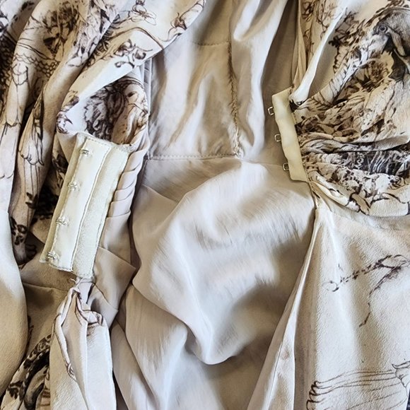 ALL SAINTS | Skull De Jouy Ruched 100% Italian Silk Corset Wrap Belt Dress Sz 2