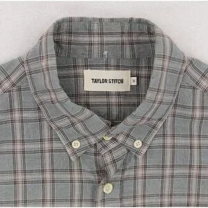 Taylor Stitch Shirt Mens 38 Green Brown Plaid Organic Cotton Long Sleeve