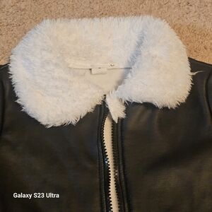 Black Faux Leather Jacket with White Fur Trim Size 2-3Y