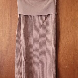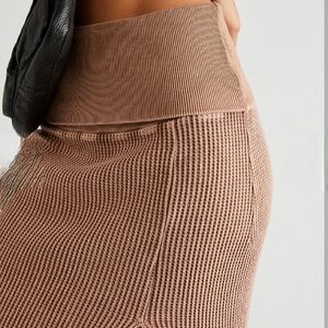 Brown Ribbed Midi Skirt
