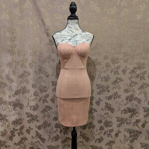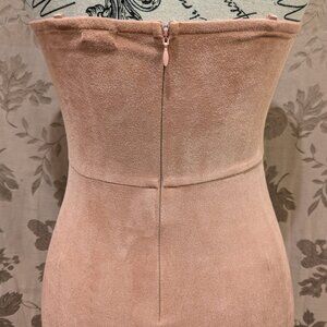 Turn heads with this beautiful pink faux suede mini dress from Guess! This soft dress features padded cups with non slip lining along the top of the interior of the dress as well as small loops to add straps! Unfortunately, the straps that were originally included with this dress are not included with this listing however. The dress has a zipper closure and some stretch to it as well as a sweetheart neckline. It's perfect for dinners, events, graduation, girl's night out, parties, and more! The sleek, classic and beautiful style is a must have for any wardrobe! Although it is used it is still in great condition with no stains, holes, or signs of wear! Excellent Used Condition! (EUC) The only flaw is the missing optional straps that were originally included. We're always happy to provide measurements upon request and we've included pictures from multiple angles to show details and any flaws.