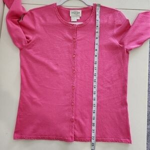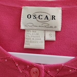 Oscar by Oscar De La Renta Silk Blend Beaded Button Front Cardigan Pink Small