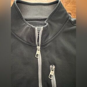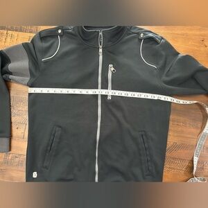 Elevate your streetwear style with this Marc Ecko Jacket in size L. The black and gray color scheme, along with the bomber jacket collar style, gives a classic and timeless look. The material is made of a comfortable cotton and polyester blend knit fabric, which is lightweight and perfect for fall, winter, and spring seasons.