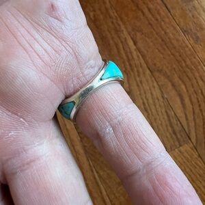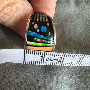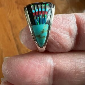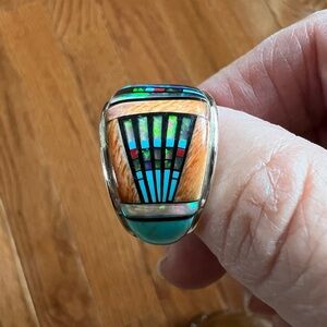 Vibrant Genuine Gemstone inlay ring with multicolor design.