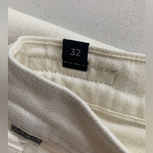 New without tags-never worn, ivory/cream (almost white) denim jeans, size 32, inseam/length approx 24”, distressing at knees and back pocket.