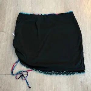 Wild Fable Womens Mesh Side Ruched Mini Skirt Large Black Tropical Leaf Print