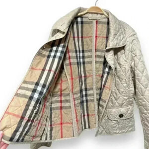 Burberry Nova Check Diamond Quilted Beige Barn Button Jacket Coat Size XL