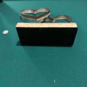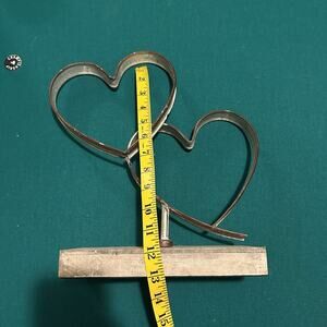 Add a touch of rustic charm to your home with this beautiful double heart sculpture. Featuring two intertwined metal hearts on a distressed wood base, this piece makes a lovely accent for shelves, mantels, or tabletops. Perfect for farmhouse, country, or shabby chic decor styles.