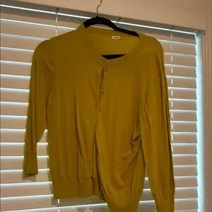 Stylish mustard yellow button-up cardigan. Perfect for layering.