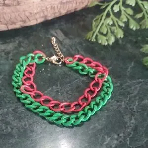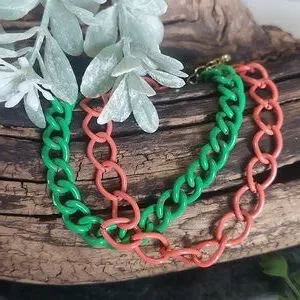Add a pop of color to your outfit with this vibrant chain bracelet. Featuring bold red and green links, this accessory is perfect for any occasion.