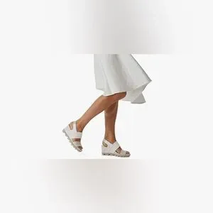 Step out in style with these chic white wedge sandals. Perfect for any occasion, these shoes offer both comfort and elegance.