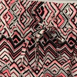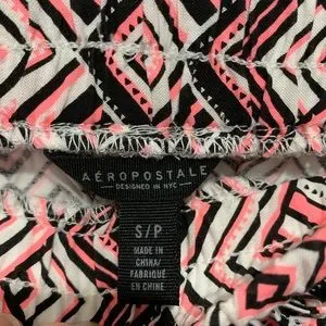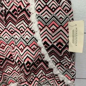NET Aeropostale Shorts Size Small. Pretty pink/black/white pattern with crochet lace details. Elastic and adjustable waist. So pretty! We are a smoke free home.