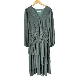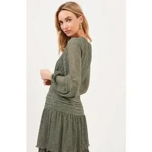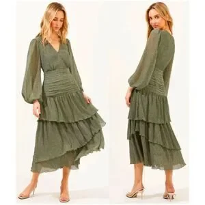 ASTR The Label Green Ruched Ruffle Floral Print Midi Dress