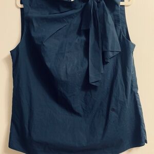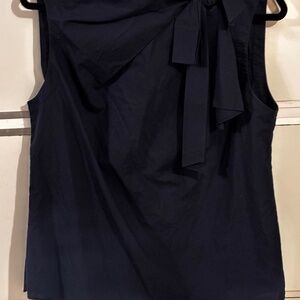 Rebecca Taylor cotton sleeveless top with bow neck navy size 12 buttons back. Some signs of wear see photos below. Used but very nice
