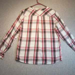 Plaid Button Up Shirt, with long Roll Up Sleeves, and 2 Pockets in Like New