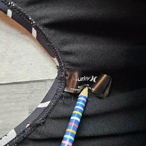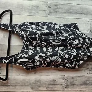 Chic Hurley swimsuit with a black and white floral design. Ideal for sunny beach outings.