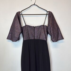 Black crepe (98% Polyester, 2% Spandex). Sheath. Sleeveless.