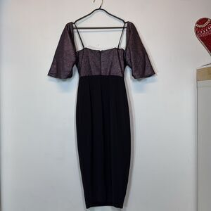 This pencil skirt dress by Badgley Mischka toes the line between formal and professional with the sparkling off-the-shoulder bodice.