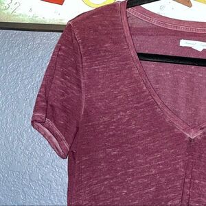 American Eagle shirt womens Size Large Short Sleeve Burnout top burgundy v neck