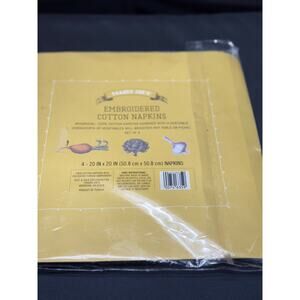 Add a touch of whimsy and charm to your table with this set of four Trader Joe’s embroidered cotton napkins! Each napkin is adorned with beautifully embroidered vegetables, bringing a playful yet elegant touch to your dining experience.