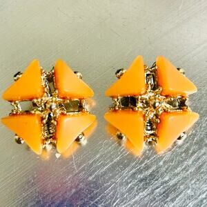 Vintage Gold Tone Light Orange Lucite Clip On Earrings