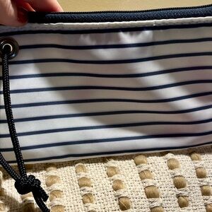 Sea Bags nautical-themed clutch featuring a bold pink anchor on a classic white and navy stripes. Like new non smoking home.