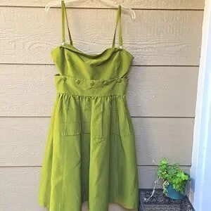 Maeve Anthropologie Green 2 Piece Fit/Flare Dress Wm 10 Detachable Skirt/Straps