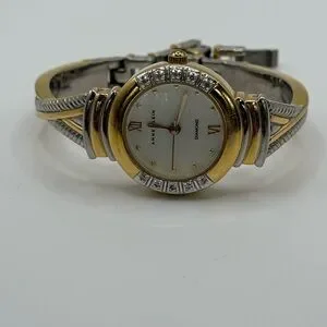 Anne Klein Gold and Silver tone Women's Bangle Watch with diamonds