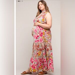 NWT Pinkblush Maternity | Pink Floral Mock Neck Maternity Plus Maxi Dress