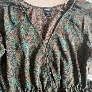 Wrangler Retro NWT Green Brown V-Neck Long Sleeve Stretchy Dress Size 3XL