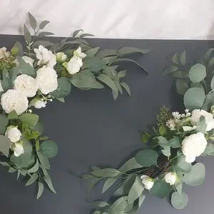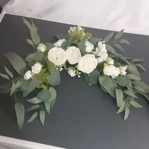 White Floral Arrangement, 2 Piece Set. This arch flowers set has two floral swags, one large corner flower decor with eucalyptus leaves, beautiful and vivid, one small arch flower same design with corner flowers.