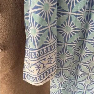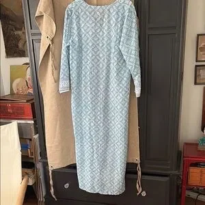 Stunning voile hand blocked Indian print blue and white patterned kaftan dress. Perfect for covering up, casual summer nights and your favorite resort!