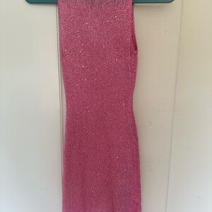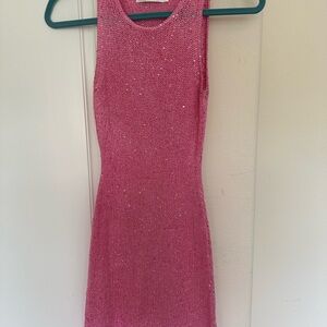 Stylish pink sequin sheer dress with sleeveless design. Perfect for a night out or a bachelorette! Only worn once.