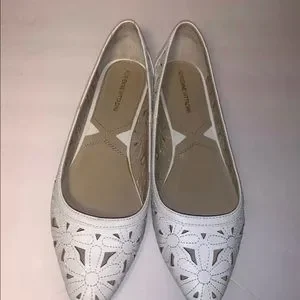 Adrienne Vittadini Women's White Leather Flower Print Low Heel Flats Size 8