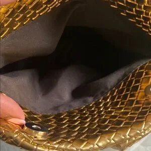 Shine with this elegant gold clutch bag, perfect for any occasion. Its luxurious design adds a touch of glamour to your outfit.