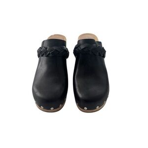 Loeffler Randall Merrill Black Braided Leather High Heel Clogs Size 6