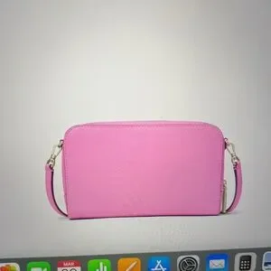 New with Tags Kate Spade mini pink crossbody, originally $259. Color iOS surf pink and it is leather. I bought it but realized it is too small for me, but I waited too long to return. It can fit the largest iPhone available now and dimensions are Height 4.5", Width is 6.5" and Length 2.5". The strap is adjustable, and with middle hole bucketed it is a 22" drop. It has 2 main zip compartments and 2 interior credit card slots. Reasonable offers considered. Thanks for looking!