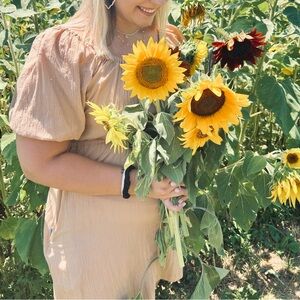 This elegant tan dress is perfect for any occasion. Had pockets!!! The open back with tie accent along with its soft fabric and stylish design offer both comfort and sophistication. 🌻