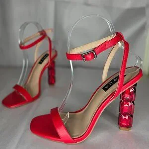 Aqua Women's Dori Red Crystal High Heeled Sandal Heels Size 7.5