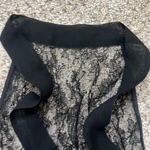 Chic black lace halter slip with a stylish design by kiki de montparnasse. Perfect for special occasions. Backless. Ties at neck. Sheer and stunning!! Size small. Offers welcome.