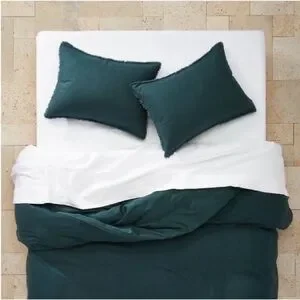 NWT Full/Queen Heavyweight Linen Blend Duvet Cover & Sham Set Dark Teal Blue