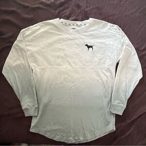 PINK Victorias Secret T Shirt Small Oversized White/Green Ombre Long Sleeve