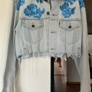 Loveshackfancy x Rialto Jean Jacket Denim Jacket with Blue Floral Embroidery