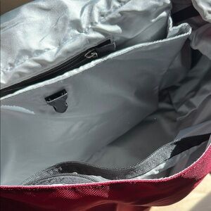 The Patagonia Red Messenger Bag combines style and functionality with its vibrant color and durable construction. Designed for everyday use, it features a reflective strip for added safety and an adjustable strap for comfort. This bag is perfect for those who value both practicality and a touch of flair in their accessories. Small pen mark inside flap. See photo.