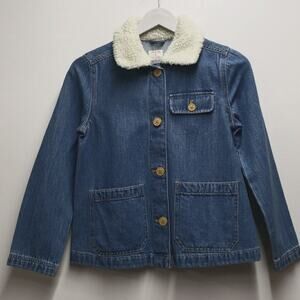 Crewcuts J. Crew Girls' Denim Chore Jacket Sherpa Trim Large 10/11 Barn Jacket