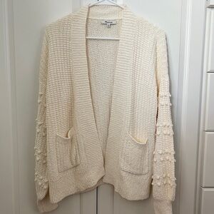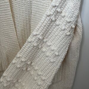 Great for keeping cozy at both the office and the beach, this versatile cotton cardigan has cute little pompoms all over its balloon sleeves.
