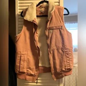 Cozy pink vest with sherpa lining. Features a zippered chest pocket and two side pockets.