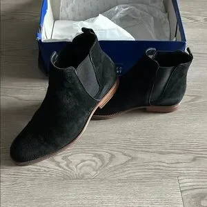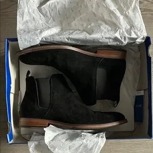 Step out in style with these black suede Chelsea boots. Perfect for any occasion, these boots offer both comfort and elegance. Gently worn, size 9, comfortable boots.