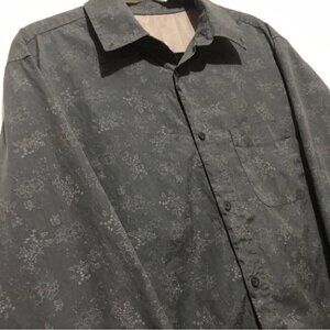 Old Navy Shirt Mens Large Gray Floral All Over Print Academia Preppy Travel Dad