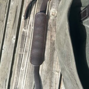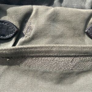 I waxed this 257 on the bottom, sides and top flap for extra weather resistance and durability. It has a cool two-tone sort of look. This particular bag also has some very cool restoration department work done on it (most pictured). The 257 is identical to the 256 excepting it’s just a bit deeper. Same width and height.